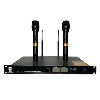 The JBL VM990 Wireless Microphone System is a professional UHF wireless microphone solution designed for live events, karaoke, stage performances, DJs, and public address applications. Engineered to deliver clear vocals with stable signal transmission, the VM990 provides reliable performance with minimal interference. Its dual-channel receiver and rugged handheld microphones make it ideal for venues and event setups that require consistent sound quality and ease of operation.